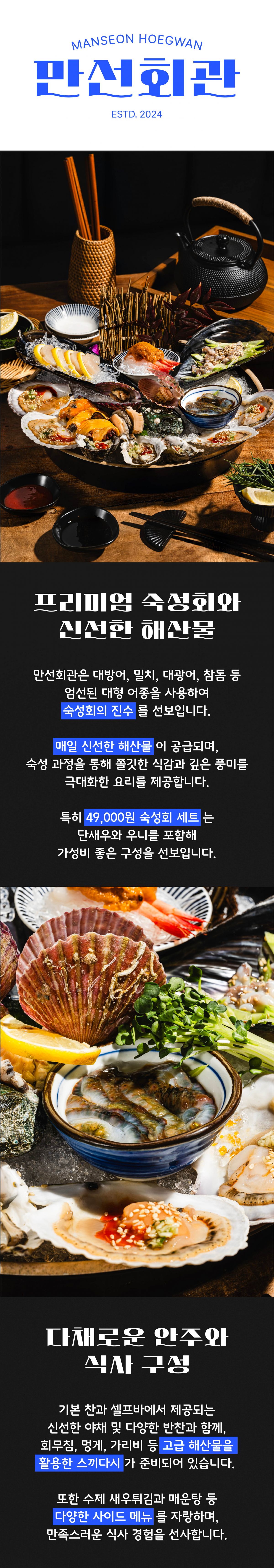 엄선된 고품질 해산물과 정성스러운 숙성 과정으로 최상의 맛을 선사합니다.